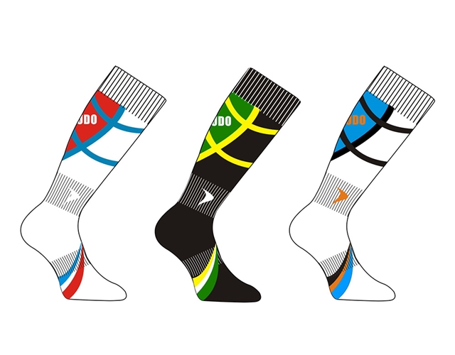 4) 132N,2/75D polyeser for kititng leg, botton with three color jacquard. Plain construction. 80gr/prs.