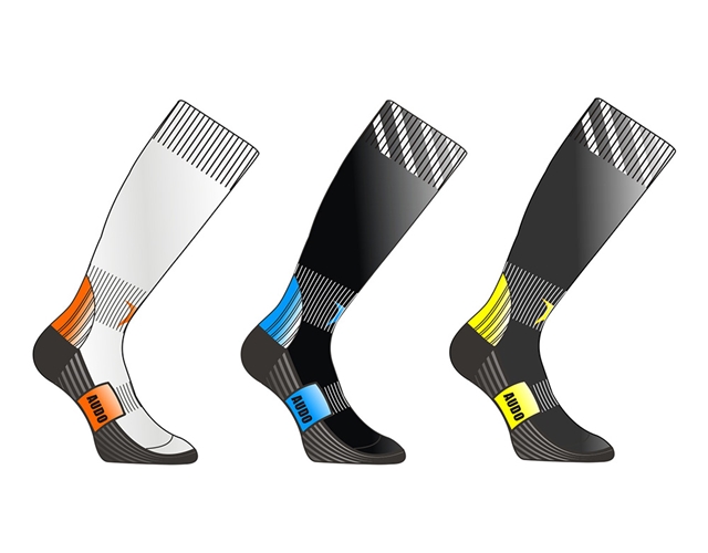 4) 144N, Stripe welt, More elastic support at back ankle. Air channel at bottom of foot with coolmax, Reifore the heel and toe.